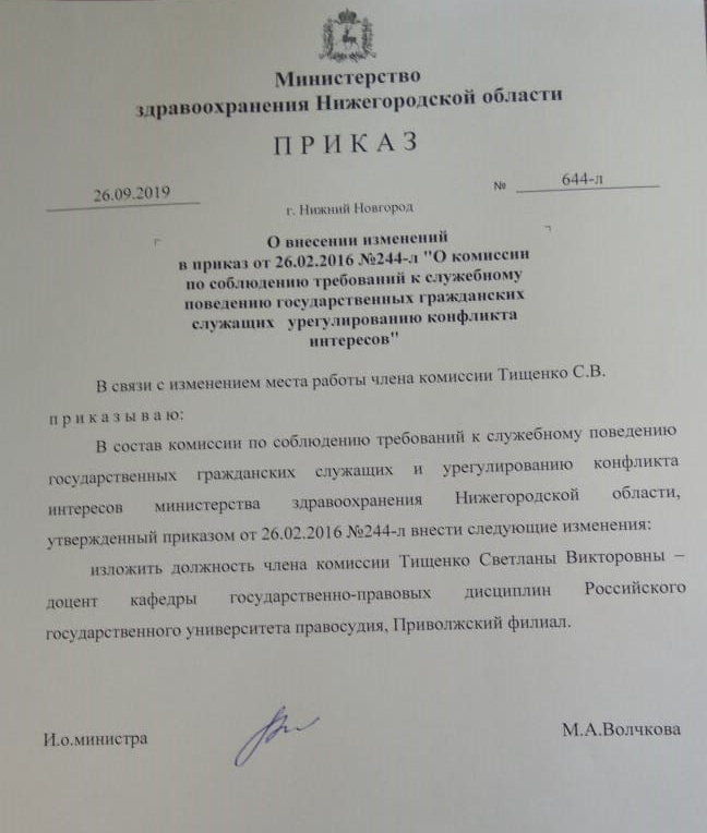 - Скачать Приказ министерства здравоохранения Нижегородской области от 26.09.2019 № 644-л «О внесении изменений в приказ от 09.06.2014 №413-л»